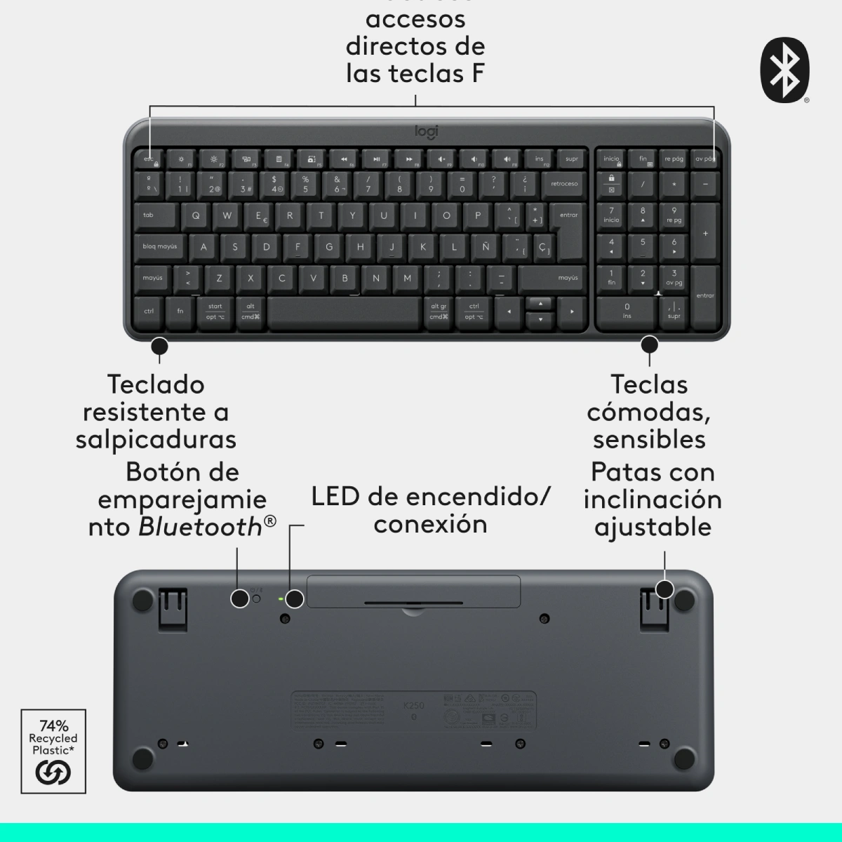 Este kit de teclado y mouse destaca por su conectividad Bluetooth® Low Energy, lo que te permite liberar tus puertos USB y conectar tus dispositivos en segundos. Ya sea que trabajes en una oficina pequeña o desde casa, el diseño compacto del MK250 es la solución perfecta para maximizar tu productividad.